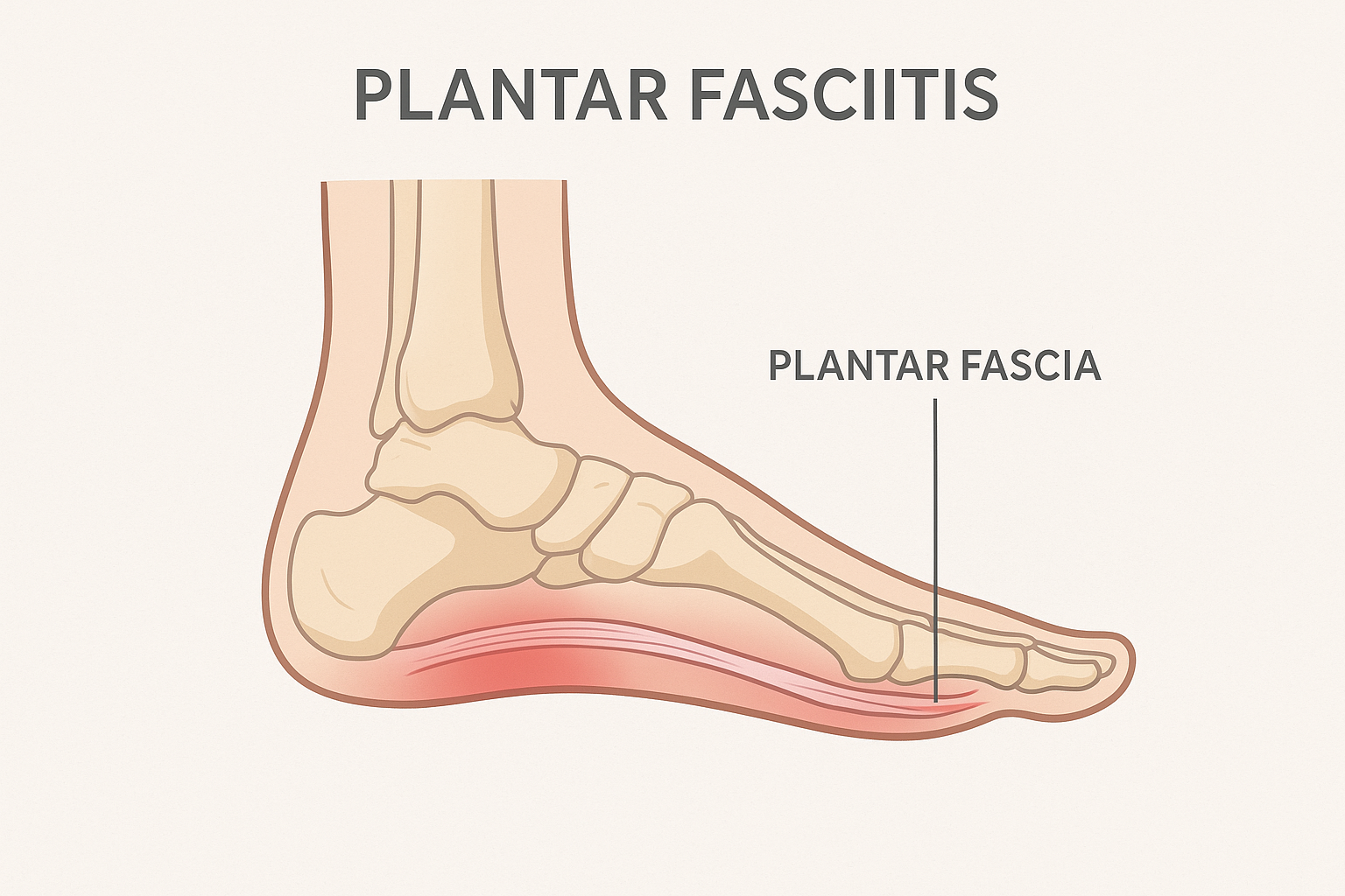 Plantar fasciitis is an inflammation of the plantar fascia, the thick band of tissue that runs along the bottom of your foot. This tissue connects your heel bone to your toes and plays a key role in supporting your arch.